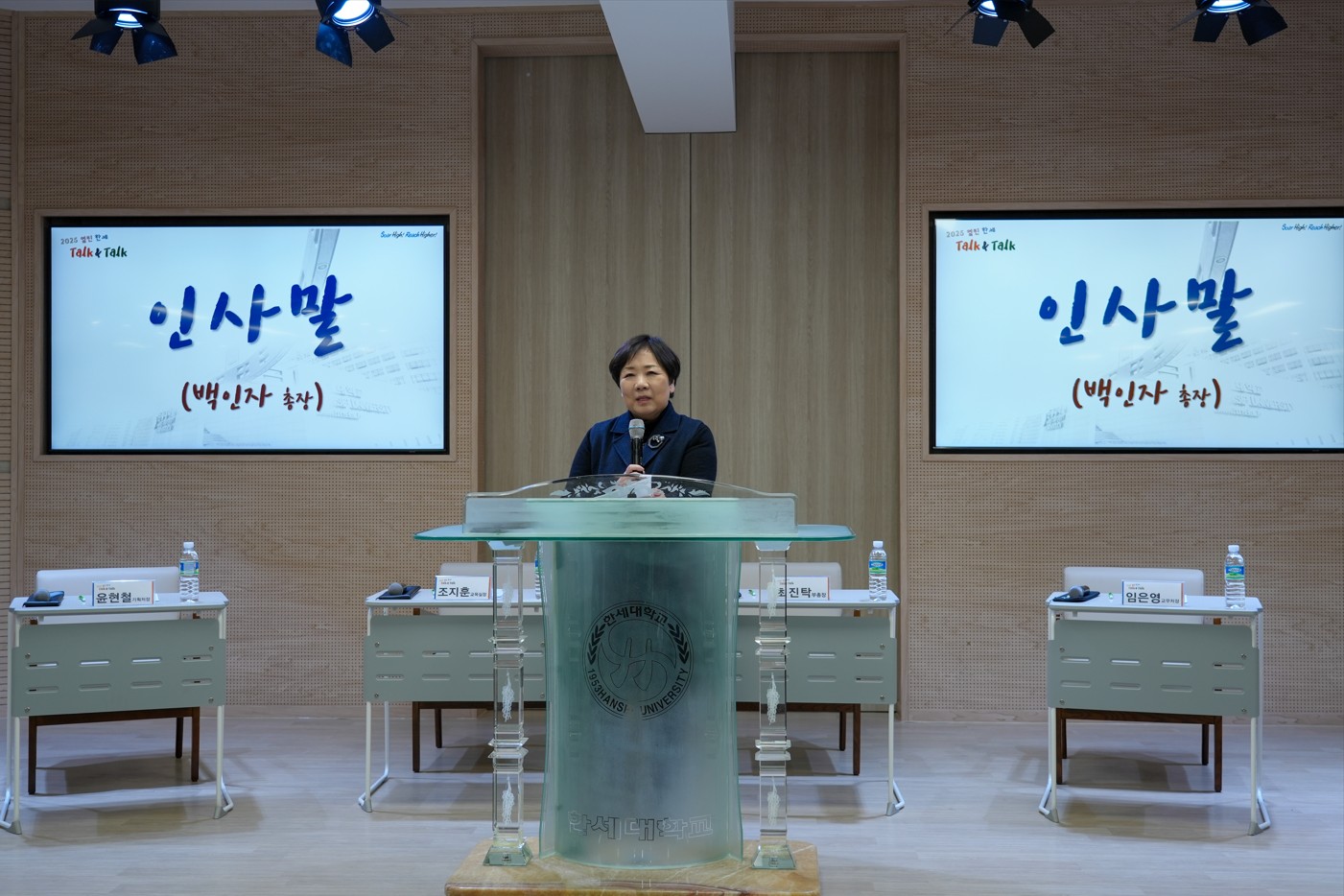 백인자 총장은 “돌이켜 보면 2025년은 많은 변화와 발전이 있었던 한 해였다. 한 해를 성공적으로 보내신 분들에게는 큰 박수와 축하를, 혹시 아쉬움이 남는 분들에게는 따 뜻한 격려와 박수를 보낸다. 열린 한세 Talk & Talk이 한 해를 돌아보며 학교가 어떻 게 달라졌는지 함께 살펴 보고, 진솔하게 대화하는 따뜻한 소통의 장이 되길 바란다. 학생들이 한세대학교에서 자부심과 보람을 느끼며 학교생활을 이어가고, 졸업 후에도 자랑스러운 모교로 기억될 수 있도록 최선을 다하고 있다. 사회가 필요로 하는 인재로 키워가는 과정은 단거리 경주가 아니라 장거리 경주이다. 페이스를 유지하며 꾸준히 달려가야 그 목표 지점에
