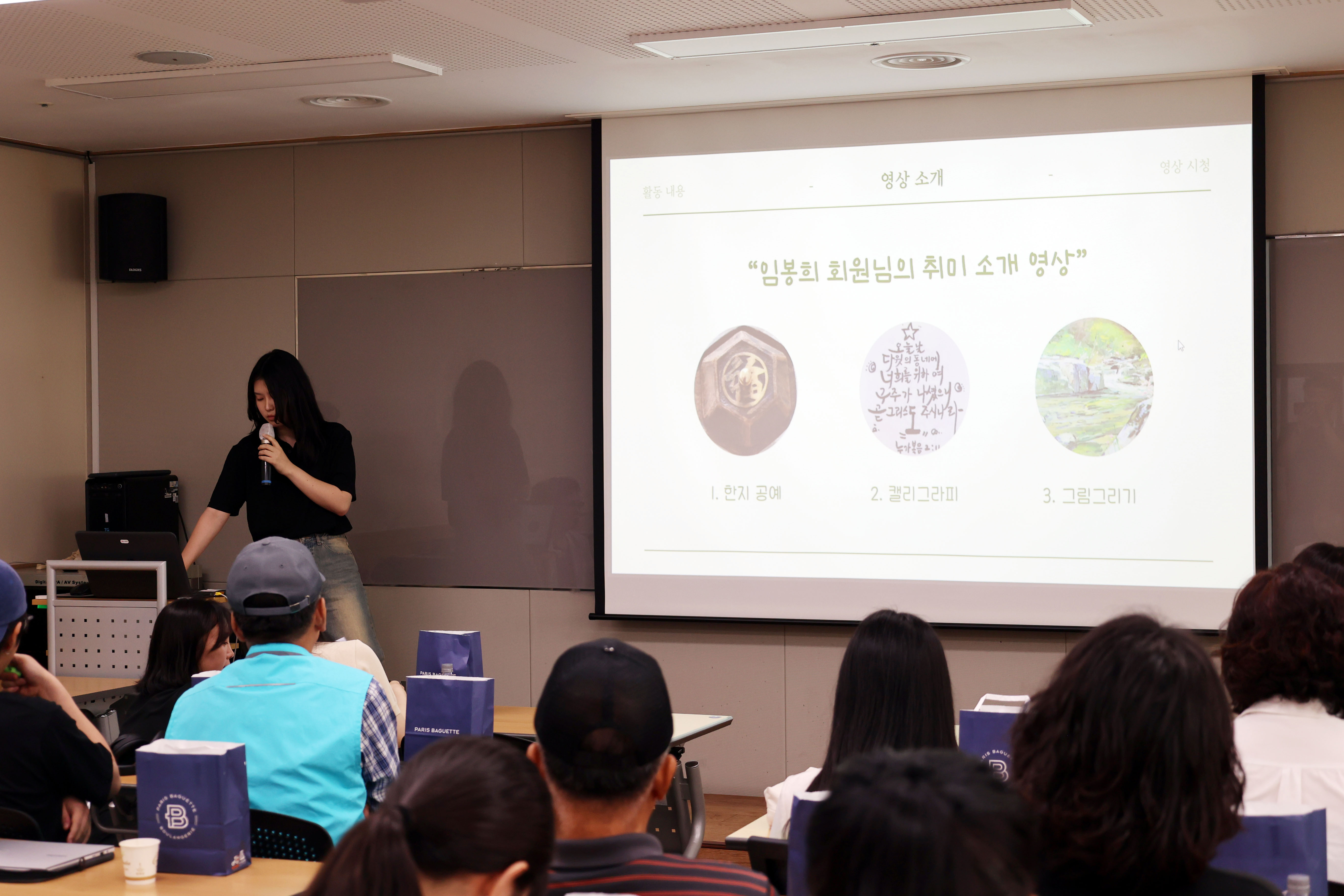 교육에 참여한 임봉희(군포, 74세)님은 ”대학에서 배울 수 있는 전문적인 지식을 손자 손녀같은 학생들을 통해 배우는 8주 과정이 짧게 느껴졌고 소중하고 고마웠다.“ 며 ”배움의 기회를 준 학교, 회관 관계자 분들에게 감사드리며 미디어에 어려움이 있는 노인들이 배울 수 있는 많은 기회가 제공되었으면 한다“고 소감을 밝혔다.