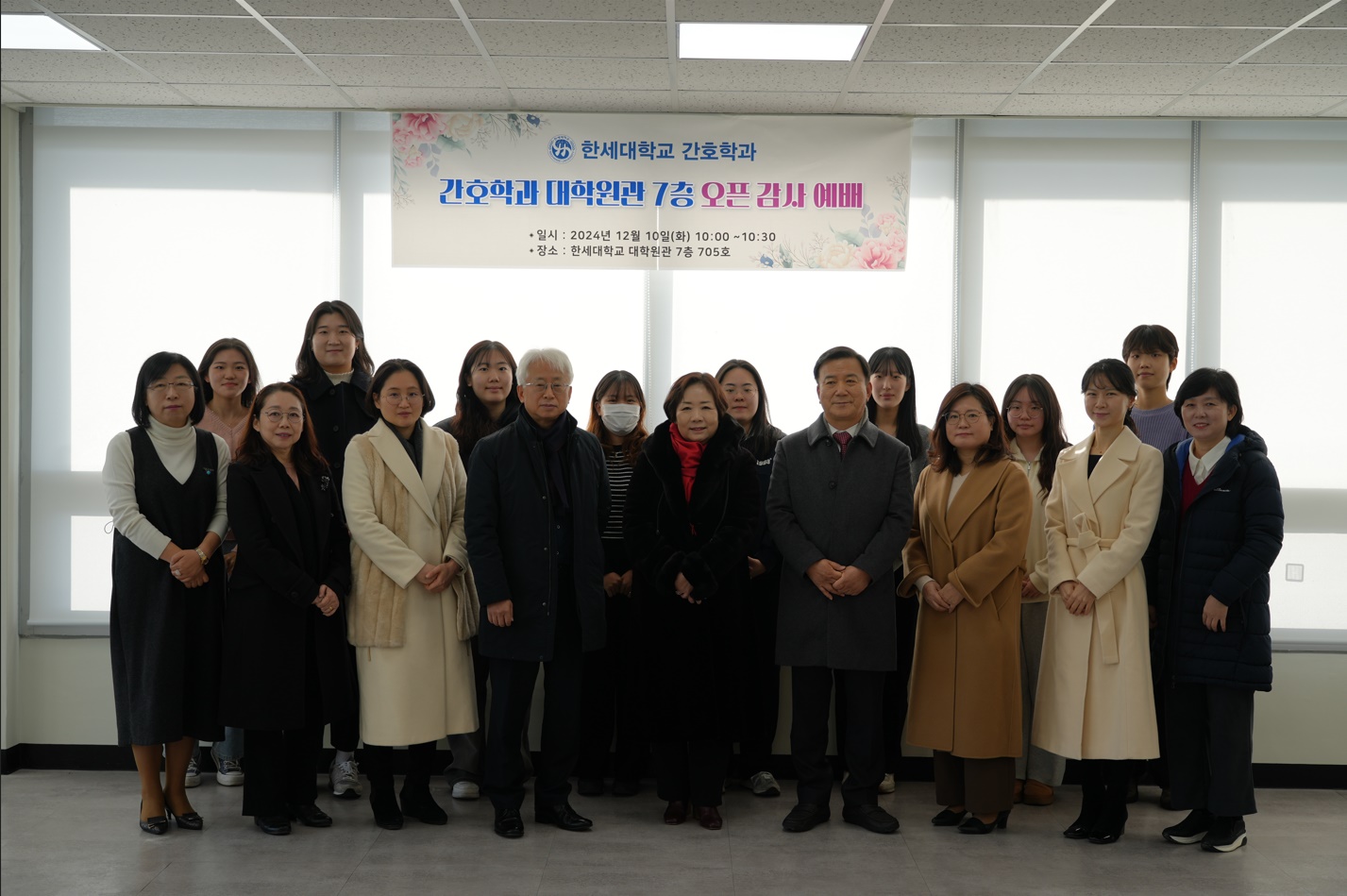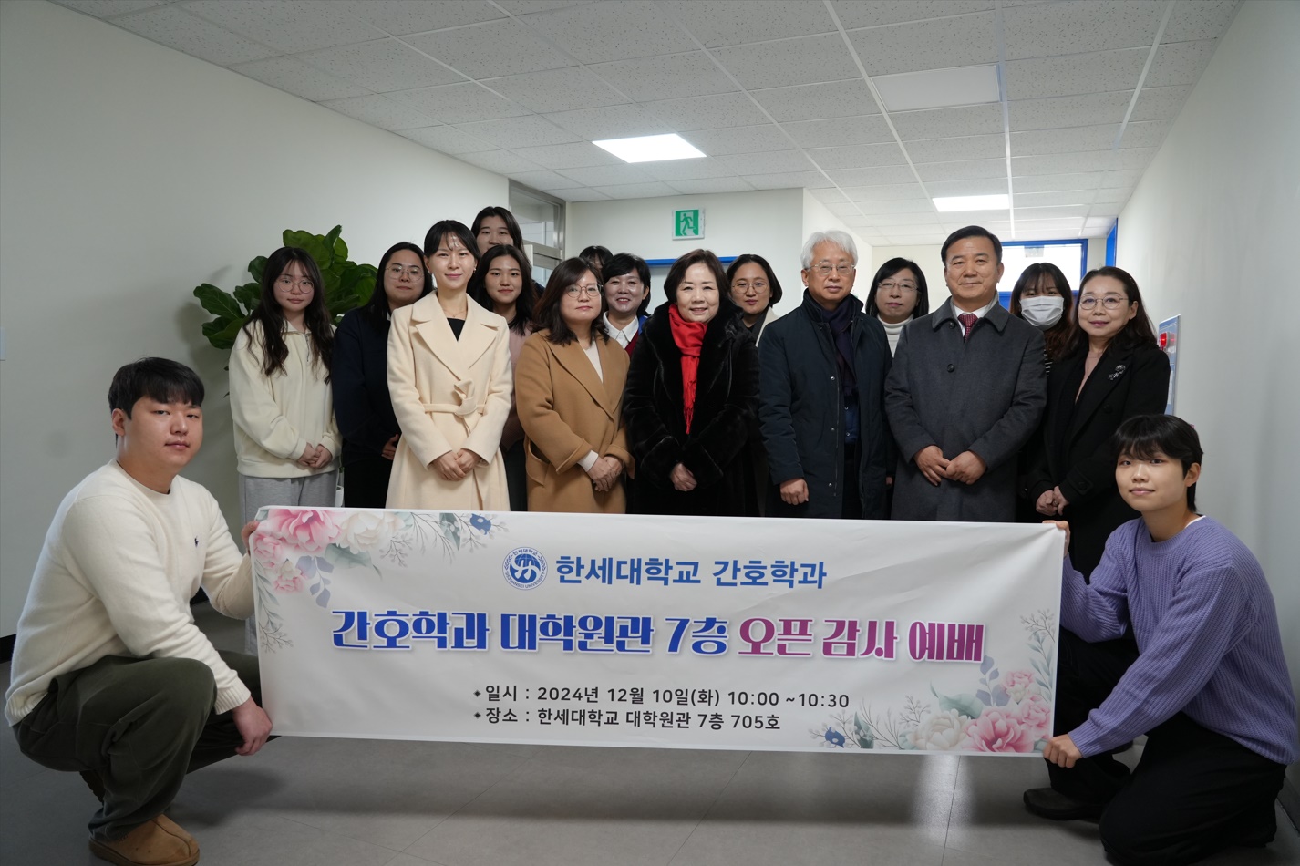 한세대학교(총장 백인자)는 간호학과 경쟁력 강화를 위해 대학원관 7층을 중심으로 간호학과 교수연구실 신설 및 이전 배치를 포함하여 전용 강의실, 행정실, 세미나실, 학생 편의시설 등을 확대하는 등 연구·강의 시설에 대한 공간확보 및 리모델링하여 재개관을 기념한 감사예배를 10일 진행하였다. 이날 행사에는 백인자 총장, 최진탁 부총장, 류대현 부총장, 조지훈 교목실장, 강지순 간호학과장 등을 비롯한 간호학과 교수, 재학생 등이 참석했다.