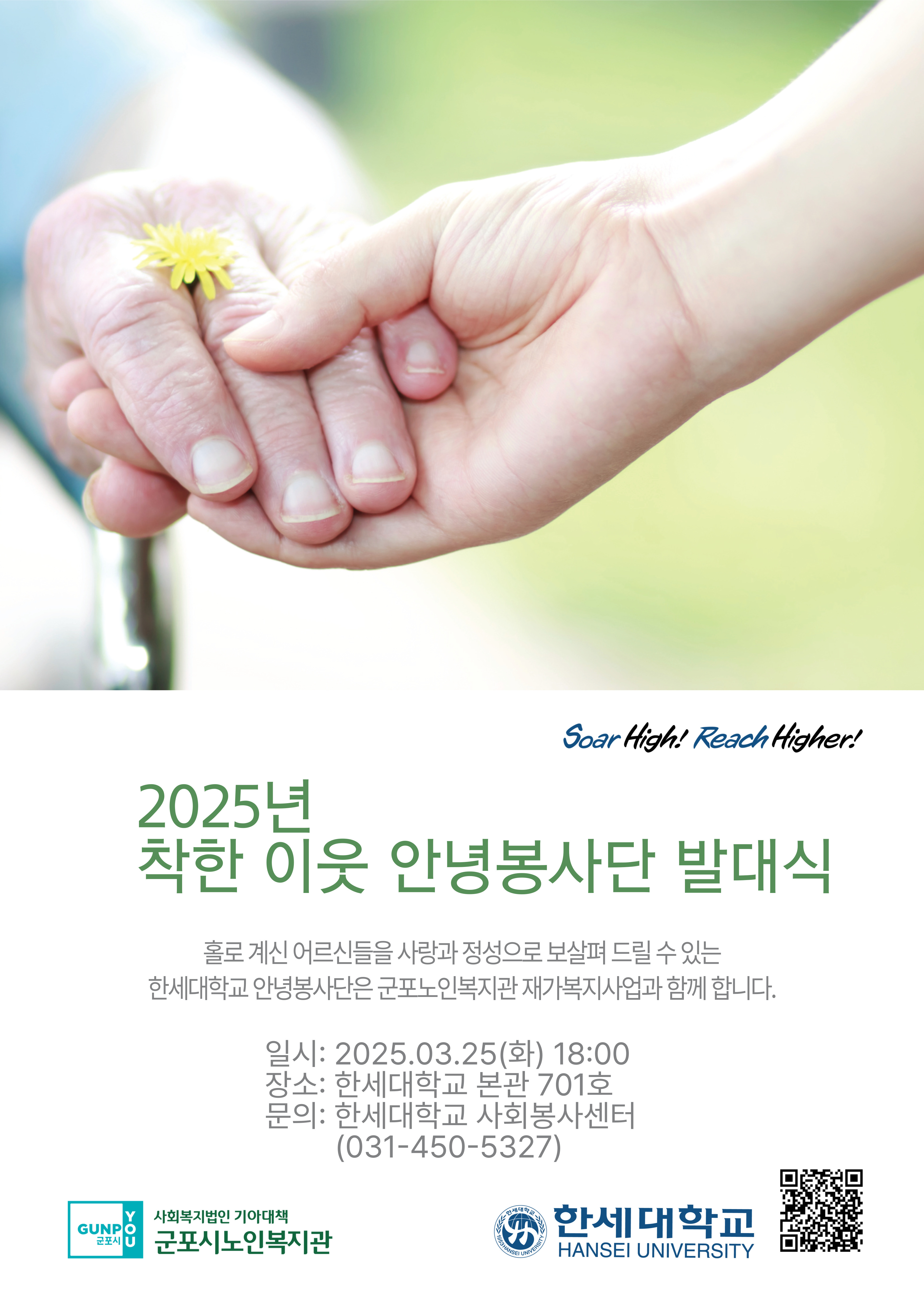 한세대학교(총장 백인자)는 사회봉사센터(센터장 한우리)를 중심으로 군포노인복지관(윤호종 관장)과 함께 2025년 착한이웃 안녕봉사단 발대식을 25일 한세대학교 본관 701호에서 개최했다.