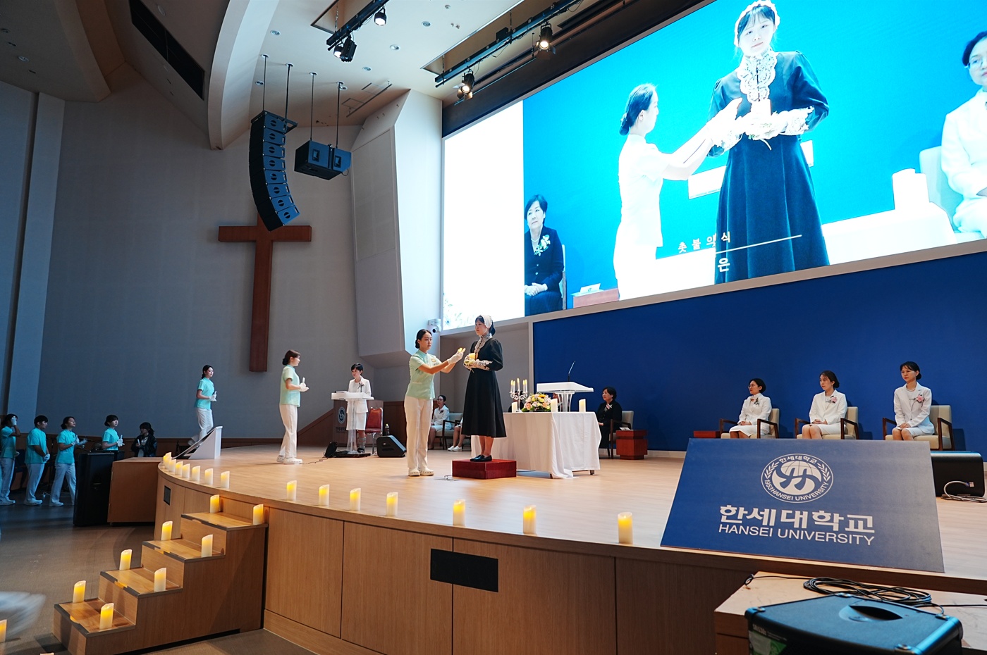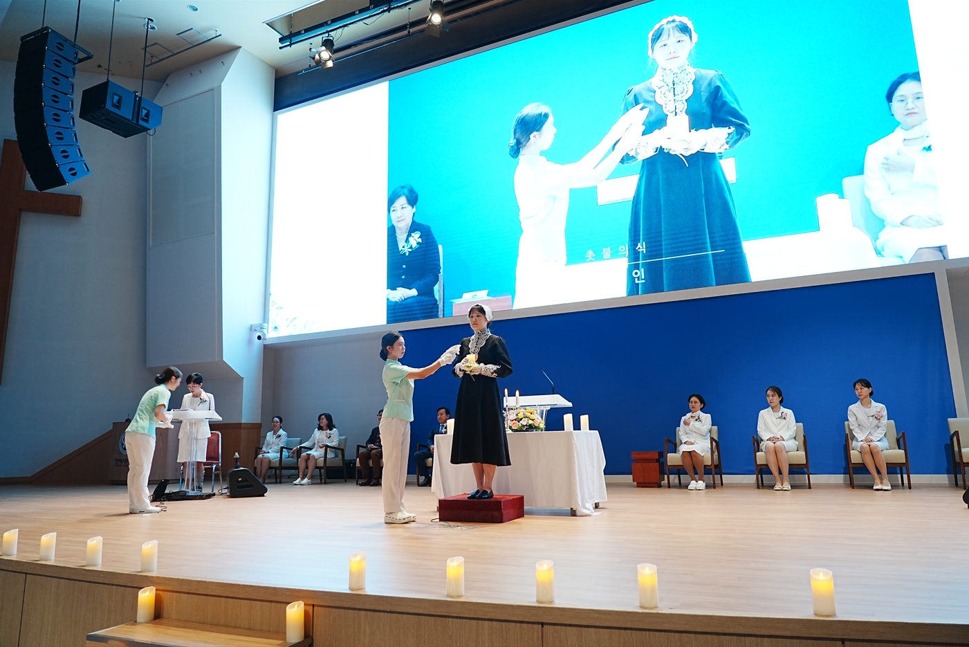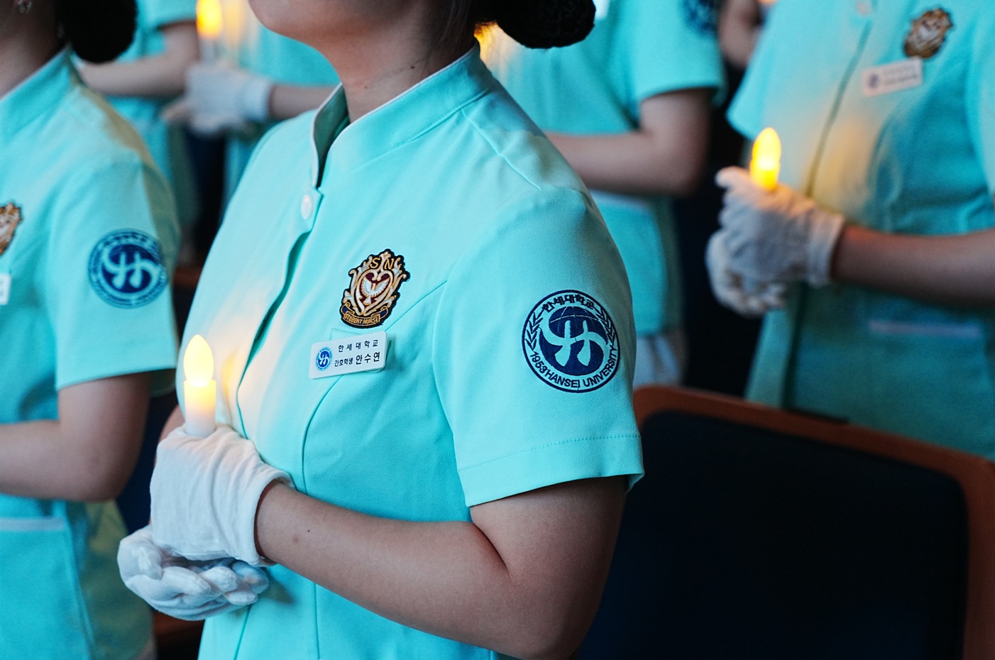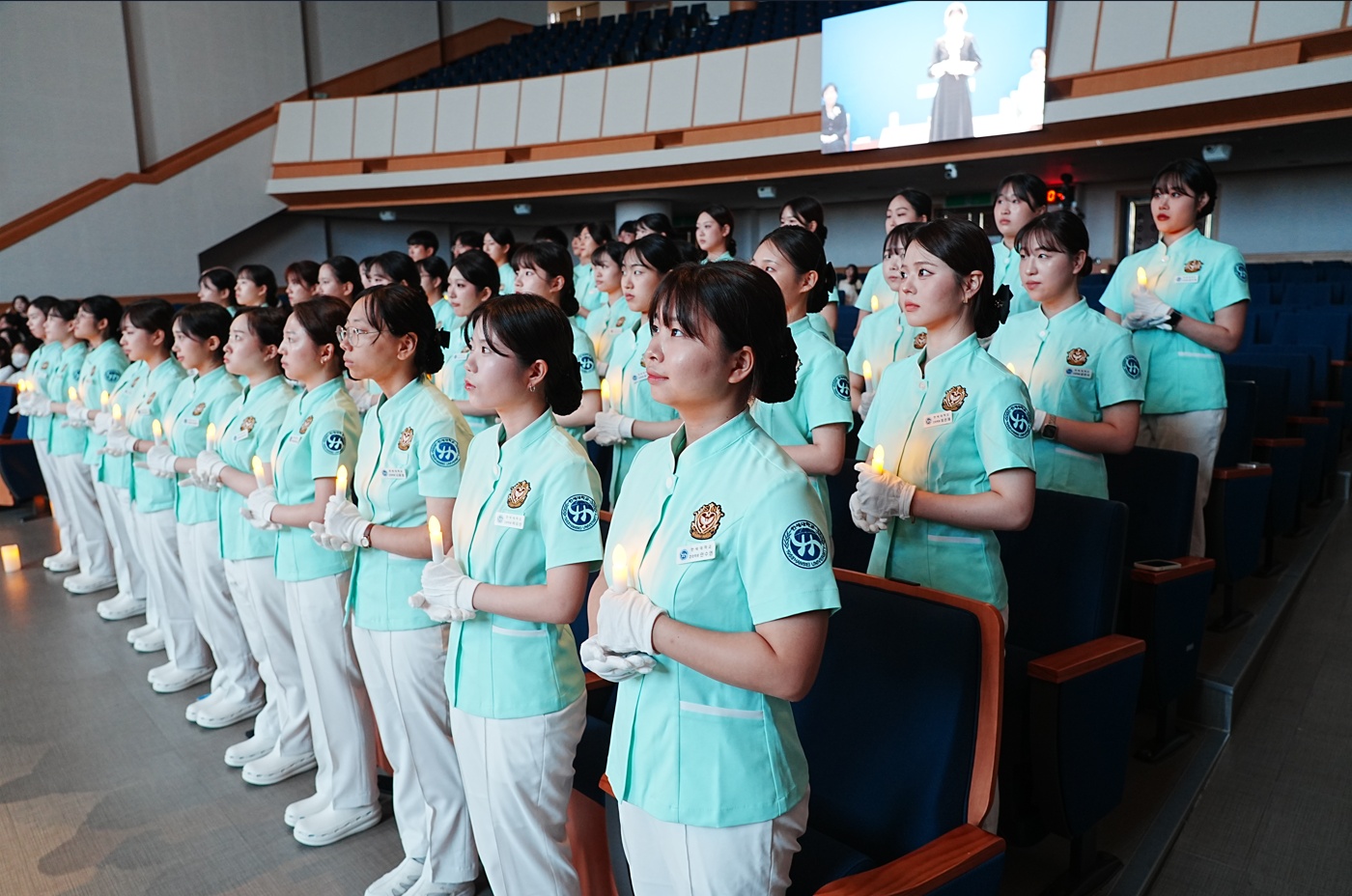 [사진 4. 나이팅게일 선서식에서 촛불 의식에 참여 중인 간호학과 학생들 1]