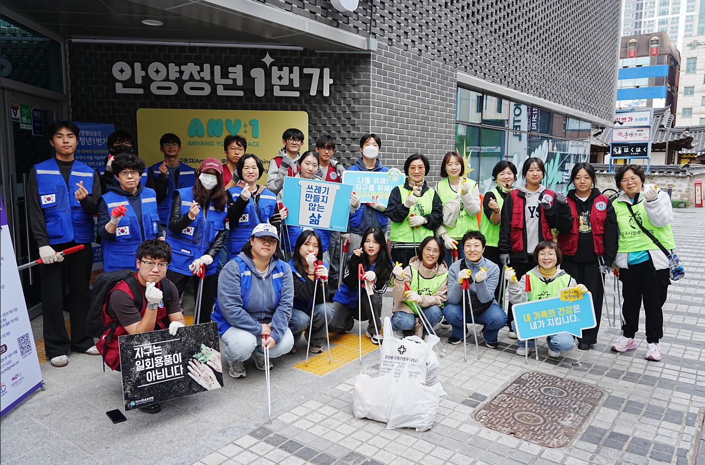 청색 조끼: 한세대, 버건디색 조끼: 성결대, 형광색: 지구시민연합 안양지회