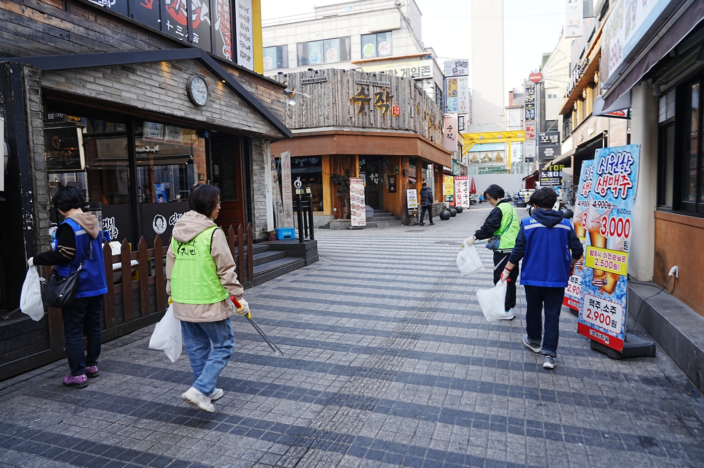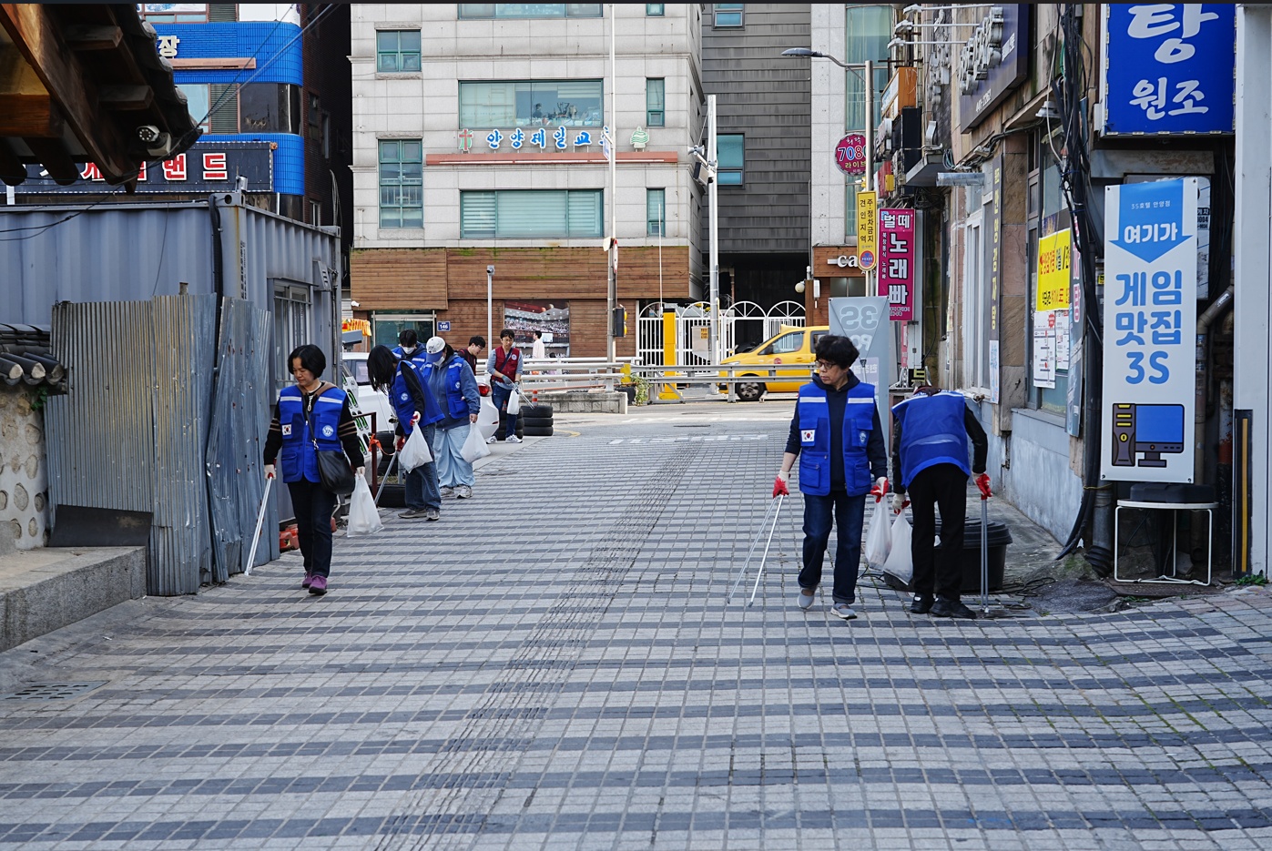 청색 조끼: 한세대, 자주색 조끼: 성결대, 형광색: 지구시민연합 안양지회
