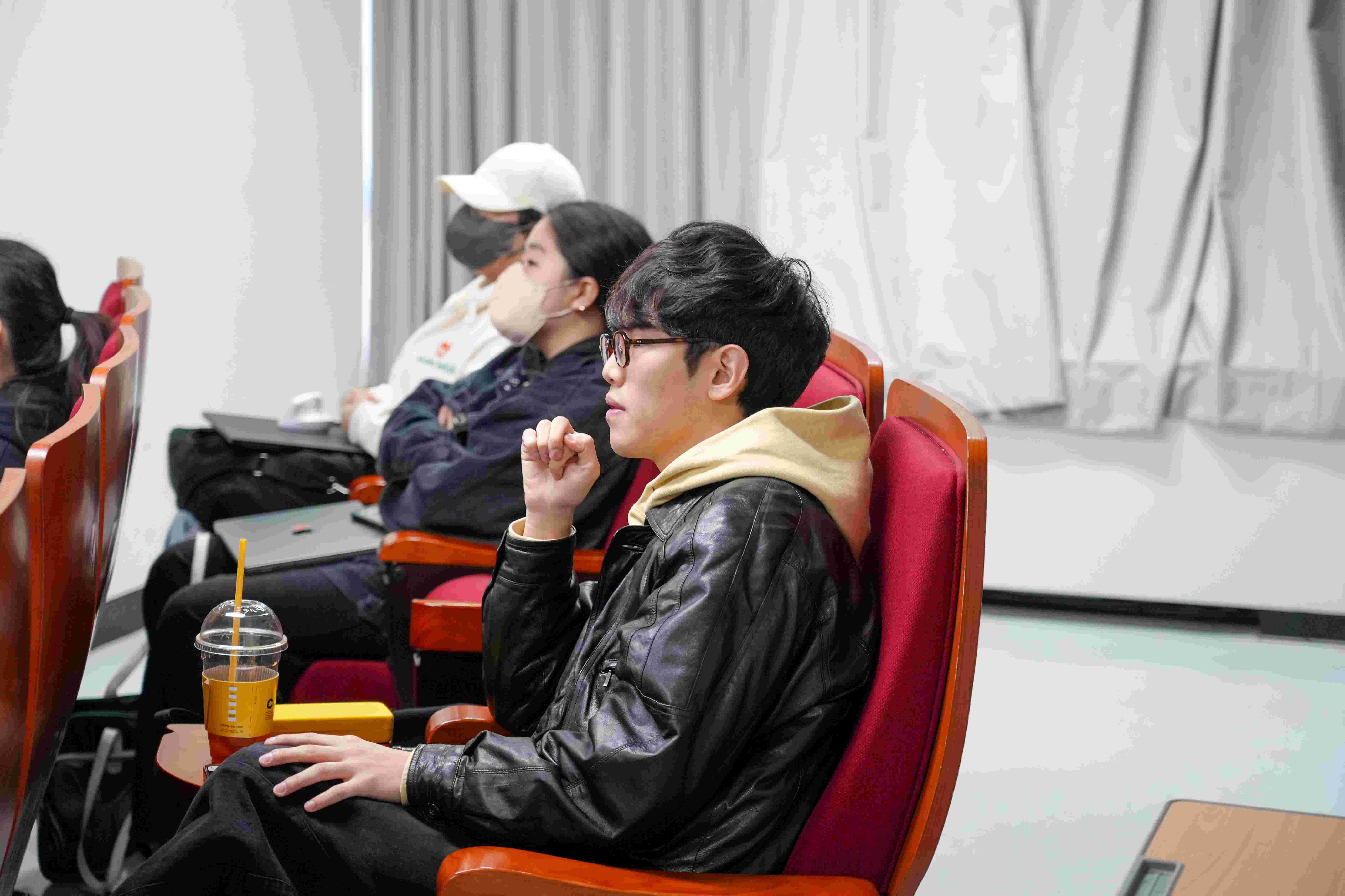 [사진 4. 설명회를 듣는 김동영 학생(미디어영상광고학과 20학번)]