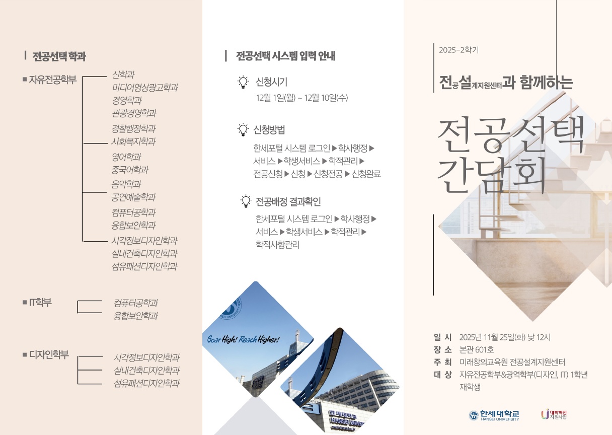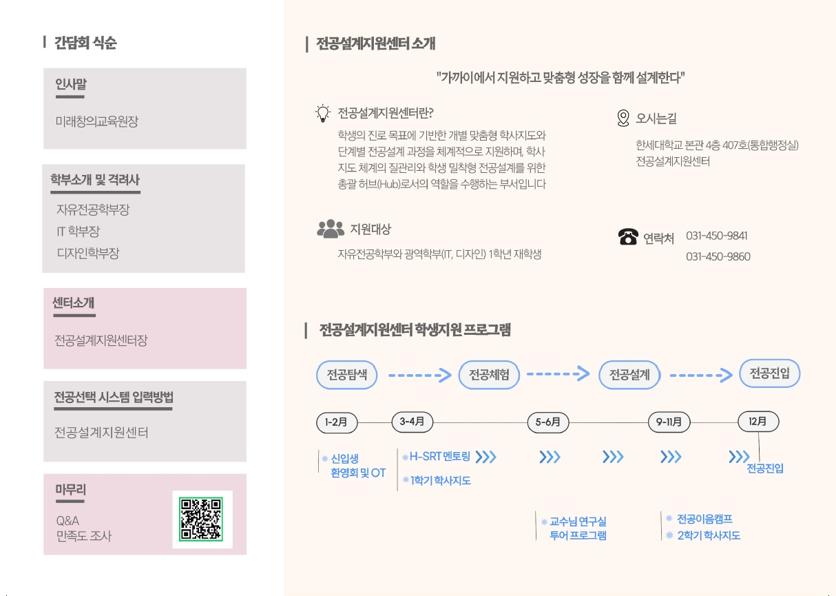 전공설계지원센터 주관 무전공(자유전공학부)과 광역 모집(IT학부, 디자인학부) 1학년 대상