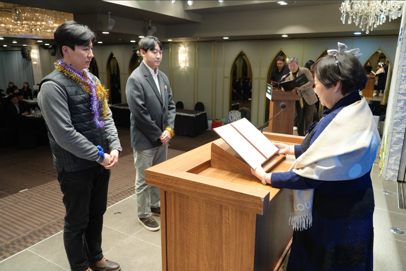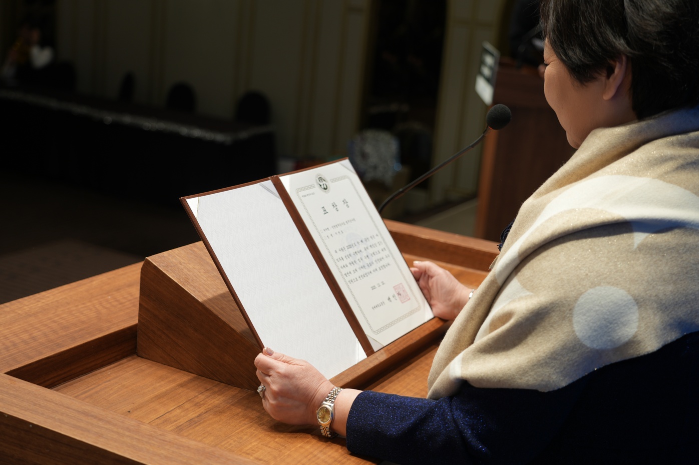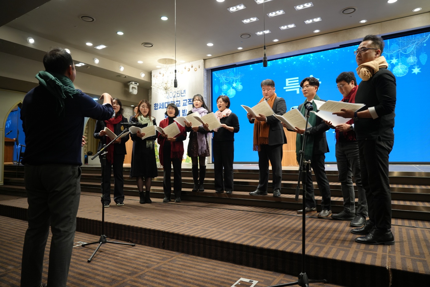 [사진 5. 2025년 교직원 송년의 밤 행사 중 특송하는 교수 대표]