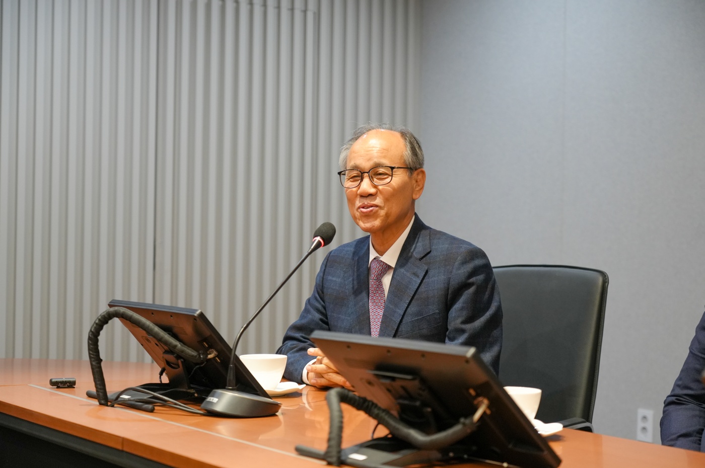 [사진 8. 발전기금 전달식 행사에서 인사말을 하는 정동균 총회장]