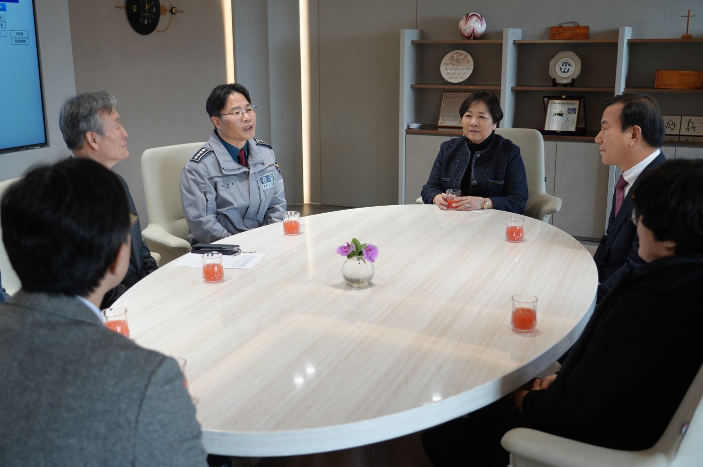 [사진 4. 한세대학교와 군포경찰서 간의 간담회 모습 1] 좌측부터 백인자 총장, 허성희 서장