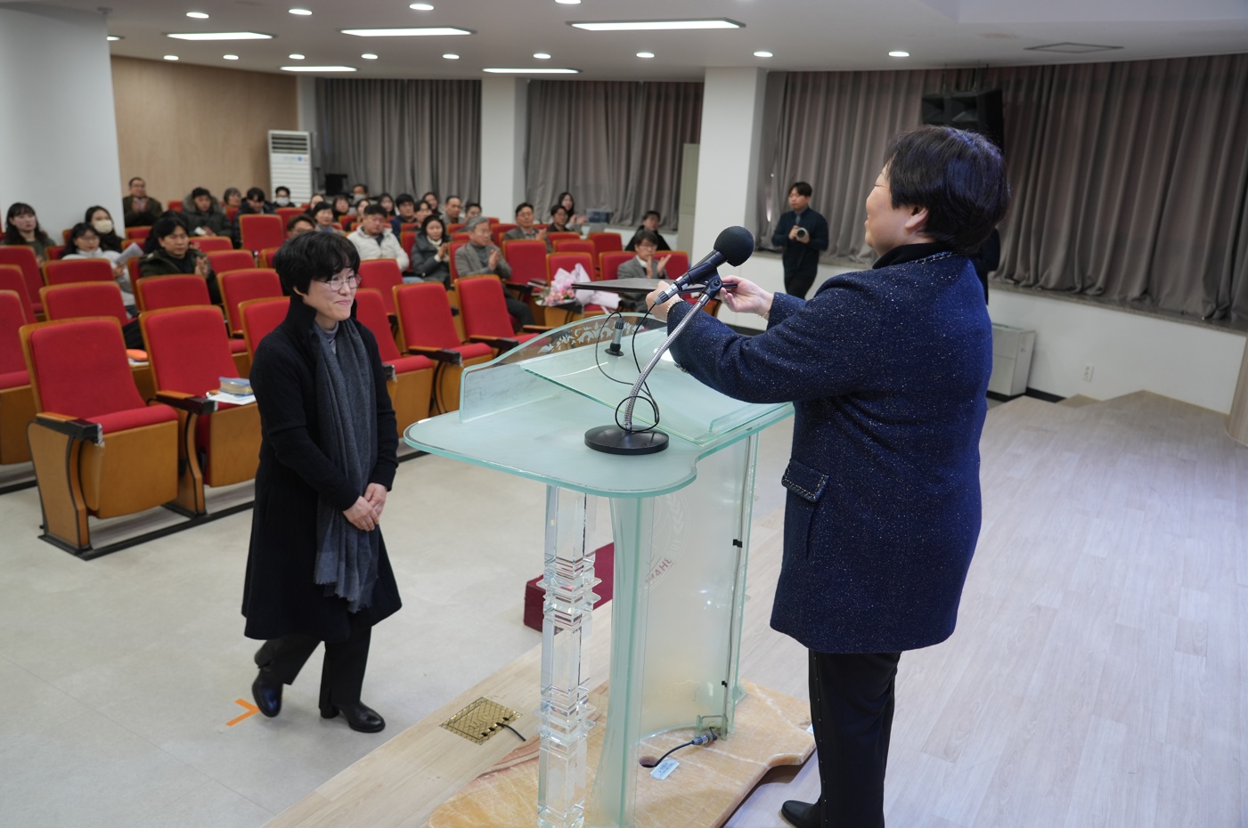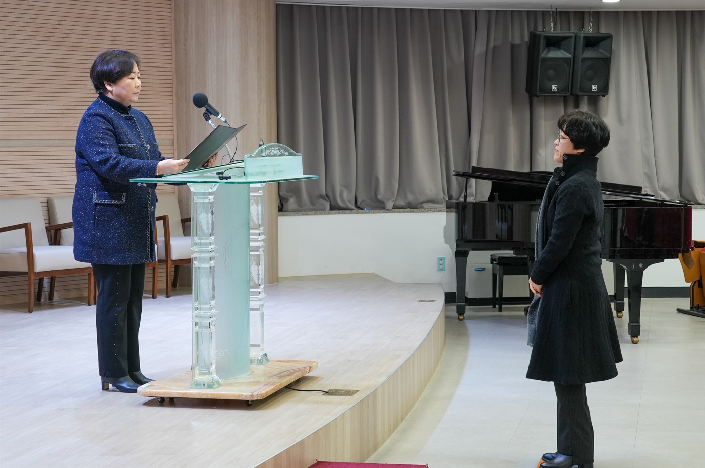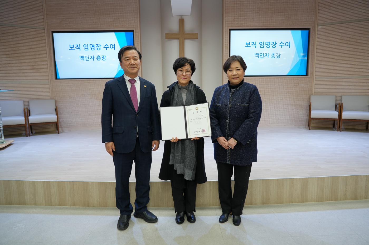 [사진 4. 신임 부총장 임명장 수여식 모습 3] 좌측부터 임은영 부총장, 백인자 총장