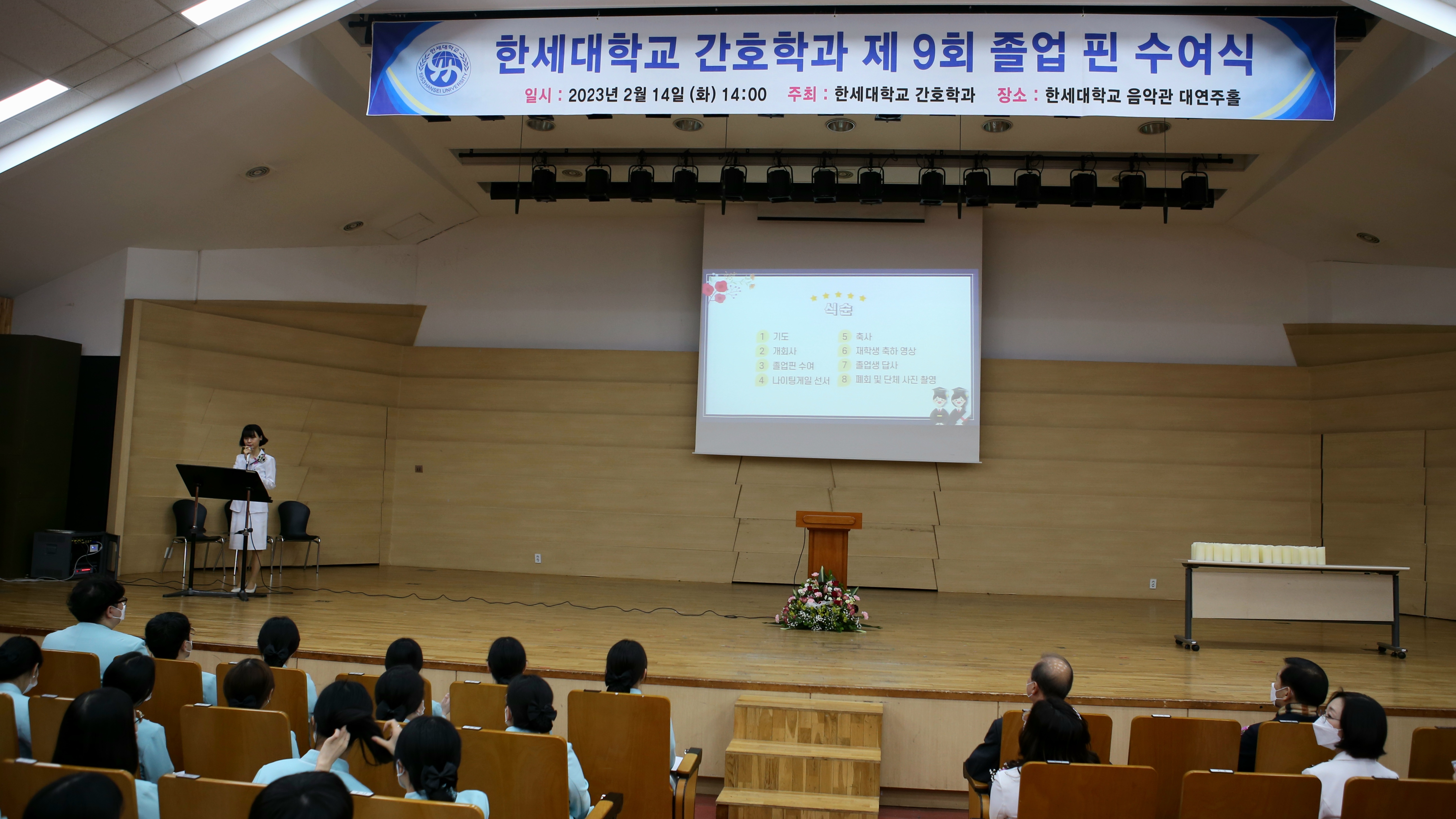2023년 2월 14일(화) 14:00, 본교 음악관 4층 대연주홀에서 간호학과 제9회 졸업핀 수여식이 있었다.