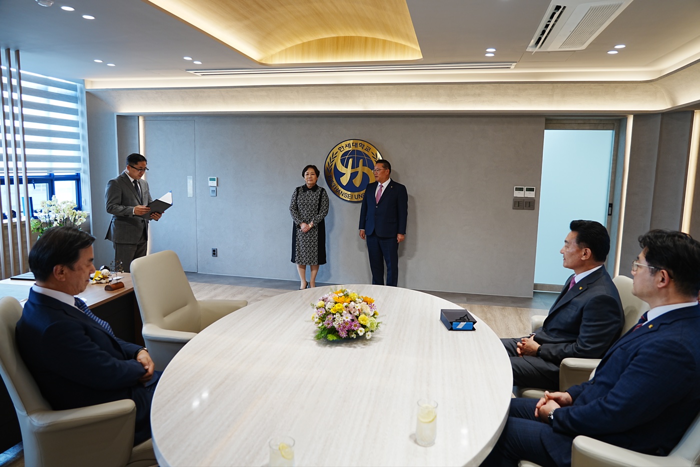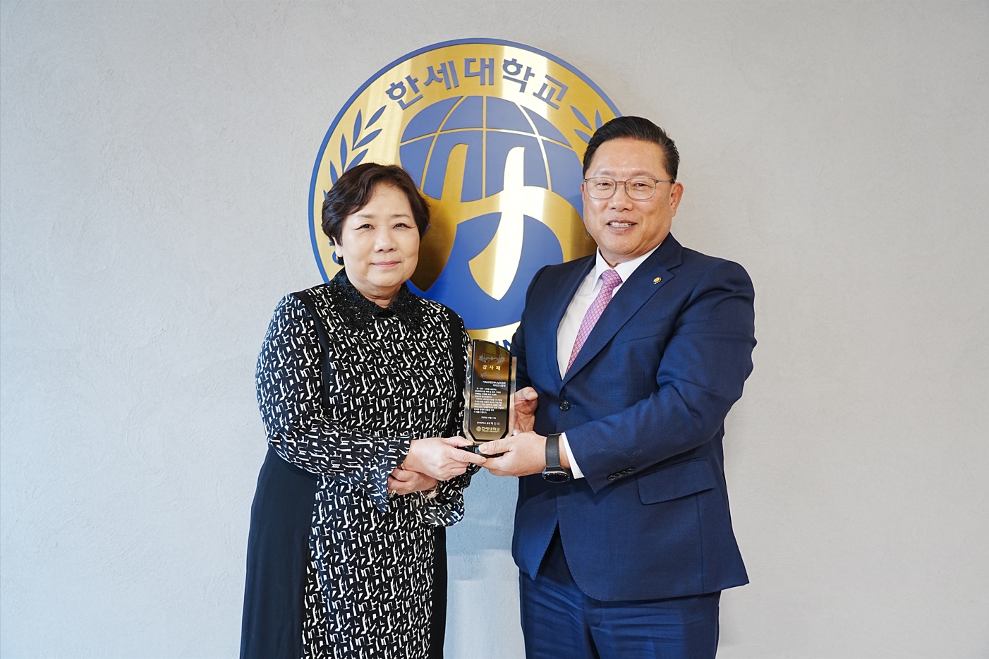 한세대학교(총장 백인자)는 대외협력처(최성훈 부처장) 주관으로 기독교대한하나님의성 회(이하, 기하성) 여의도지방회와 함께 발전기금 전달 및 감사패 증정 행사를 총장실에 서 17일 진행하였다.