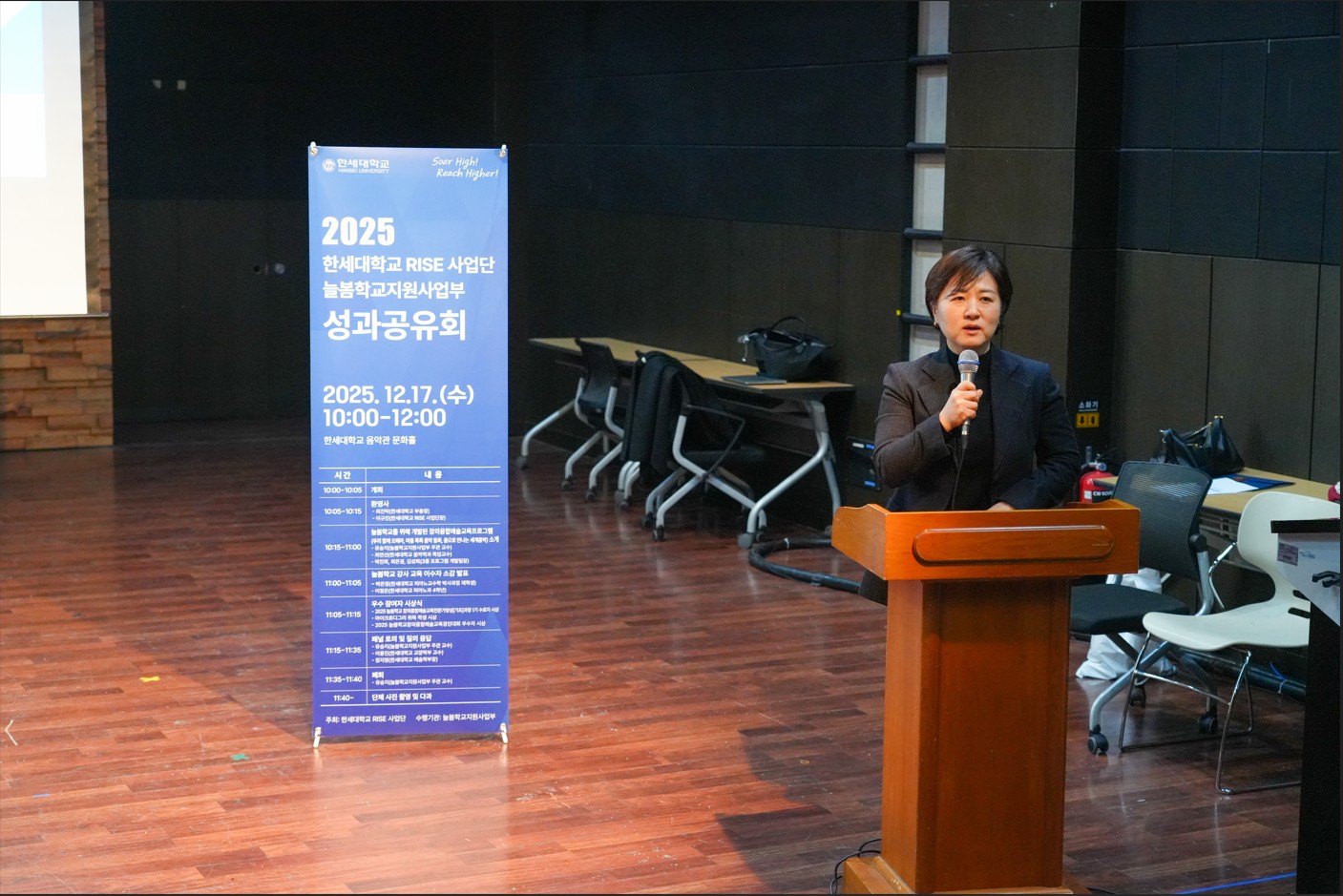 [사진 4. 늘봄학교 지원사업 2025 성과발표회에서 인사말 하는 이규진 RISE 사업단장]
