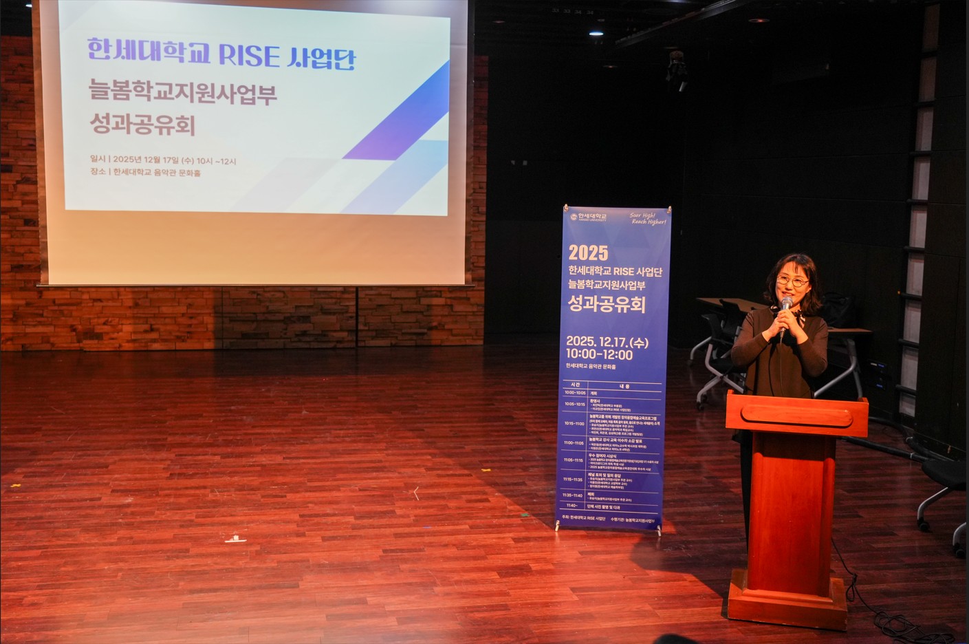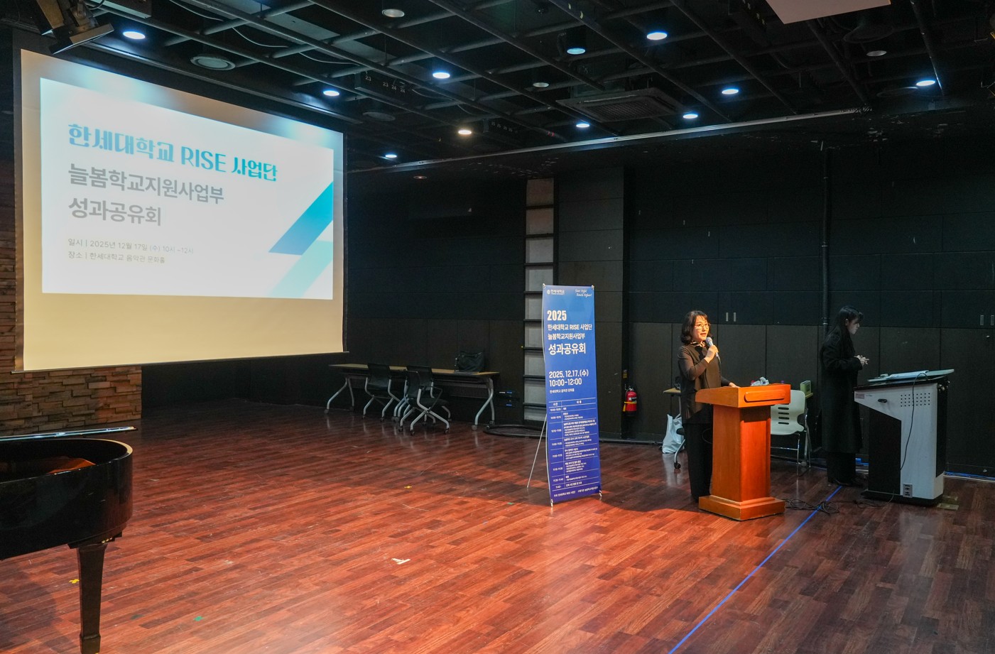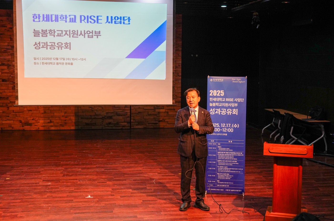 한세대학교(총장 백인자)는 RISE 사업단 주관으로 ‘늘봄학교 지원사업 2025 성과발표회’를 학교 음악관 문화홀에서 17일 개최했다.
