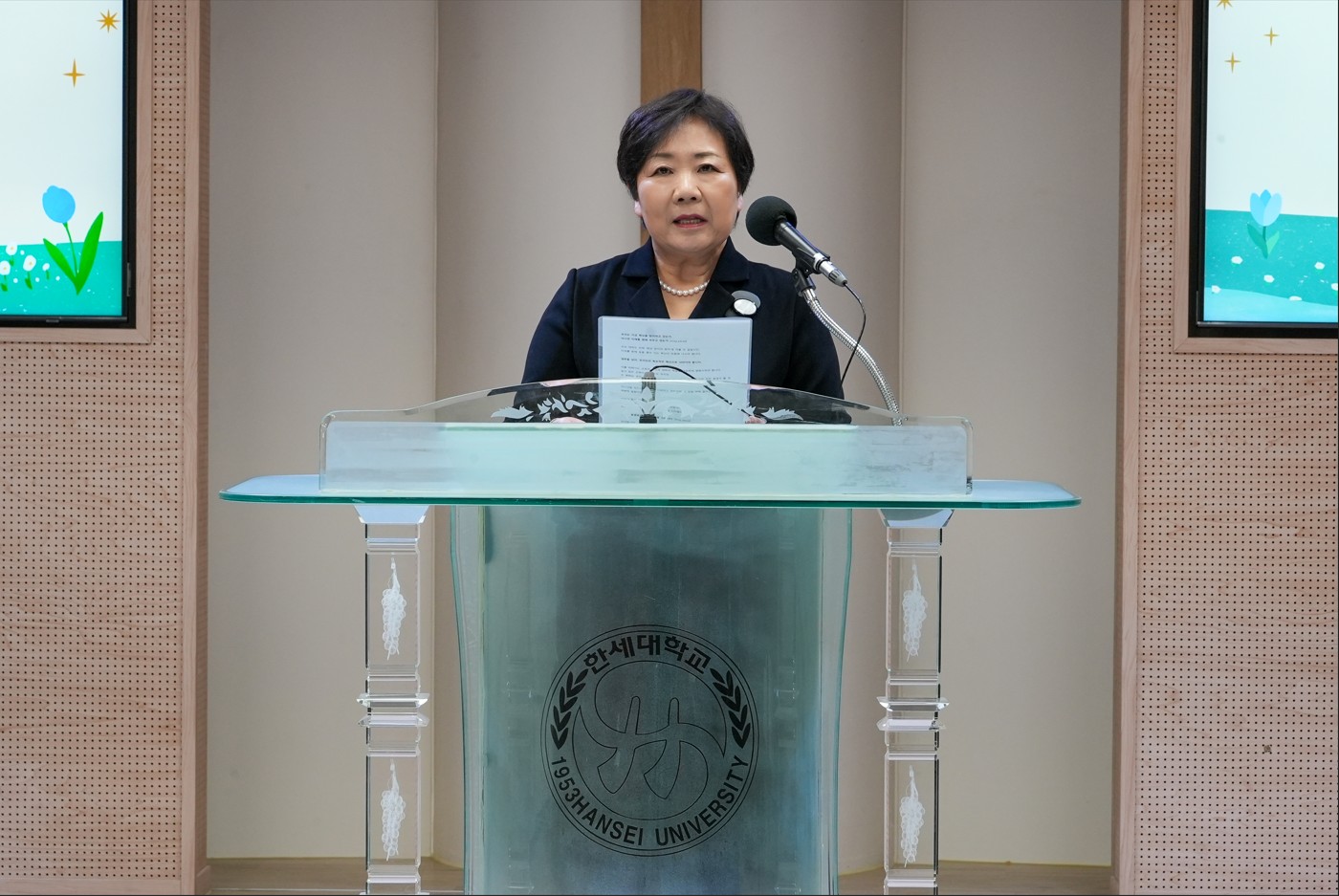 [사진 2] 2026-1학기 전체 교수회의에서 모두발언을 하는 백인자 총장 2