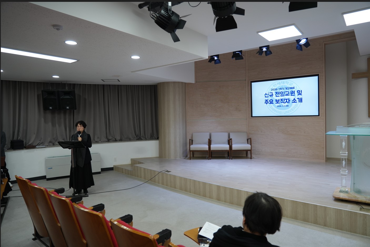[사진 6] 2026-1학기 전체 교수회의를 진행하는 임은영 부총장 겸 교무처장